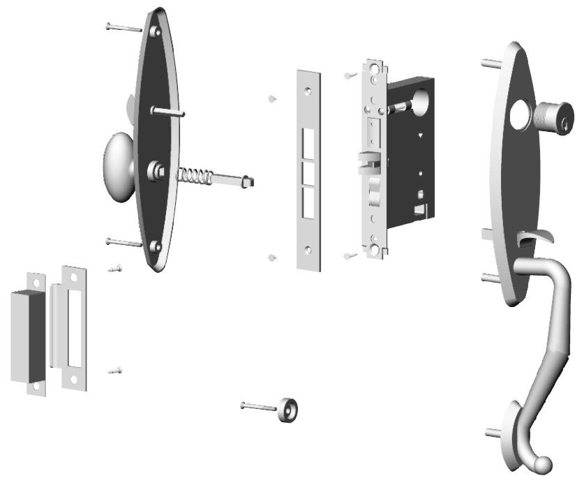 3.Mortise mechanism, operated through a cylinder and mortise lock.