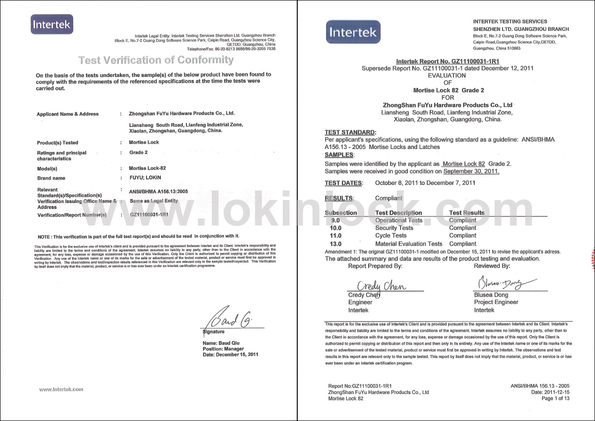 2.ANSI/BHMA Grade 2 A 156.13 - 2005 Certified. 1,200,000 cycle-test passed.